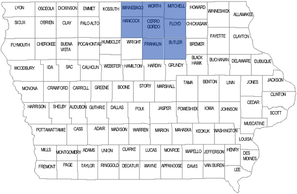 Service In The Following Counties: Cerro Gordo, Butler, Hancock, Winnebago, Worth, Mitchell, Floyd, Franklin Service In The Following Cities and Surrounding Areas: Alexander, Britt, Charles City, Clear Lake, Coulter, Fertile, Floyd, Forest City, Garner, Grafton, Greene, Hampton, Hanlontown, Joice, Kanawha, Kensett, Klemme, Lake Mills, Latimer, Manly, Mason City, Meservey, Mitchell, Nora Springs, Northwood, Osage, Plymouth, Rock Falls, Rockford, Rockwell, Rudd, St. Ansgar, Sheffield, Swaledale,Thornton, Stacyville, Ventura |